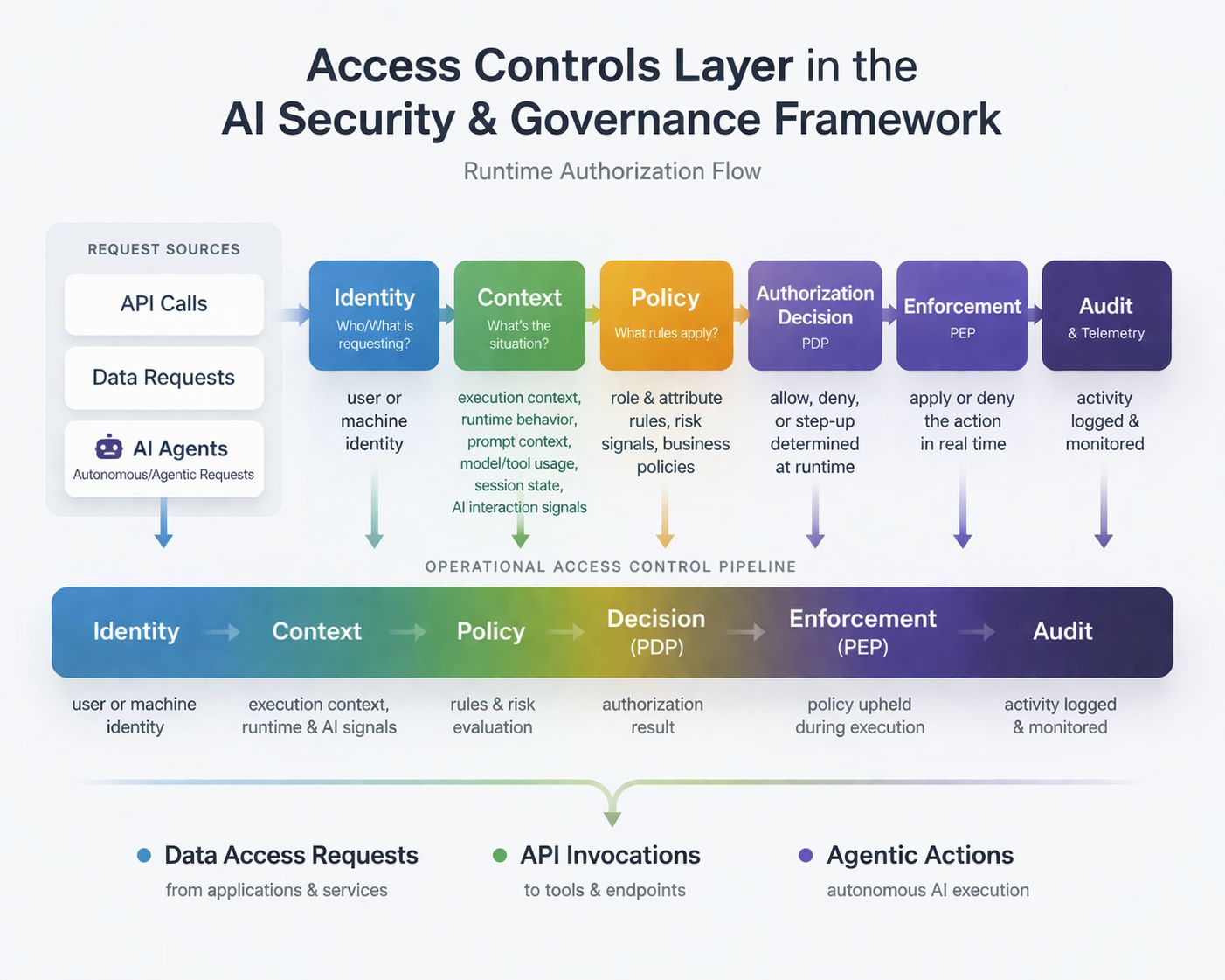 In AI-enabled ecosystems, the Access Controls Layer becomes significantly more critical — and more complex.